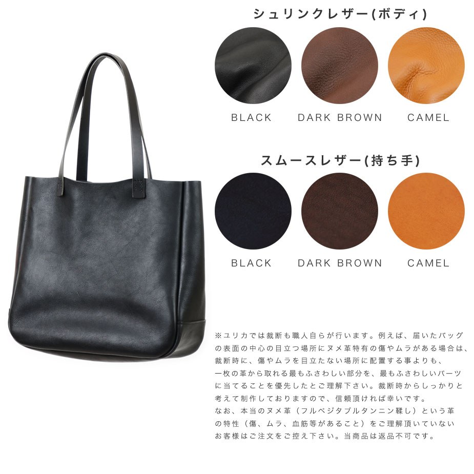 【納期は最大45日程度】トートバッグ ハンドバッグ 手提げ2(中)【eureka leathercraft ユリカレザークラフト】日本製 姫路レザー 鞄 本革 フルベジタブルタンニン鞣し ヌメ革 エイジング トートバッグ A4サイズ【送料無料】革バッグ