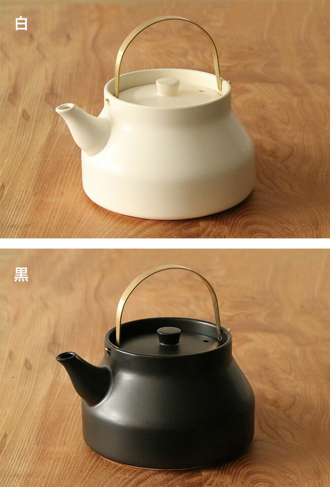 かもしか道具店 陶のやかん[やかん 陶器 ケトル 2リットル 2L ガス ガス専用 ガス対応 おしゃれ かわいい 黒 白 和モダン 耐熱陶器 直火 お湯 白湯 湯沸かし ヤカン 台所 キッチン キッチン用品 レトロ お茶 ブラック ホワイト 遠赤外線効果] 即納