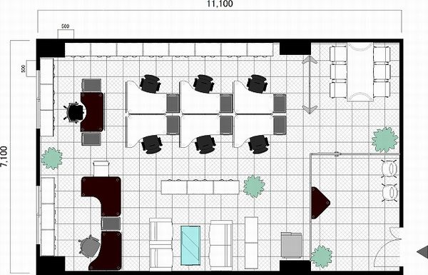 パッケージ内容詳細デスク サイズ w1200×d700mmw2400×d1200mmサイドキャビネット 各1台 鍵付ミーティング・応接 4人×1箇所6人×1箇所収納 w800×67段その他 入口電話代待合椅子床材はオプションです。
