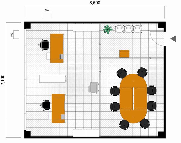 パッケージ内容詳細デスク サイズ w1800×d800mmサイドキャビネット 各1台 鍵付ミーティング・応接 8人×1箇所収納 w800×16段w1600×4段その他 スチール間仕切りカウンター待合椅子床材はオプションです。