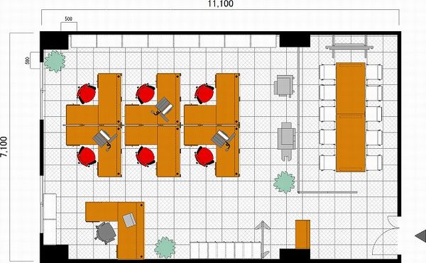 パッケージ内容詳細デスクサイズ w1800×d1800mmサイドキャビネット 各2台 鍵付ミーティング・応接 10人×1個所収納 w800×50段その他 スチール間仕切り受付カウンターロッカー8名分床材はオプションです。
