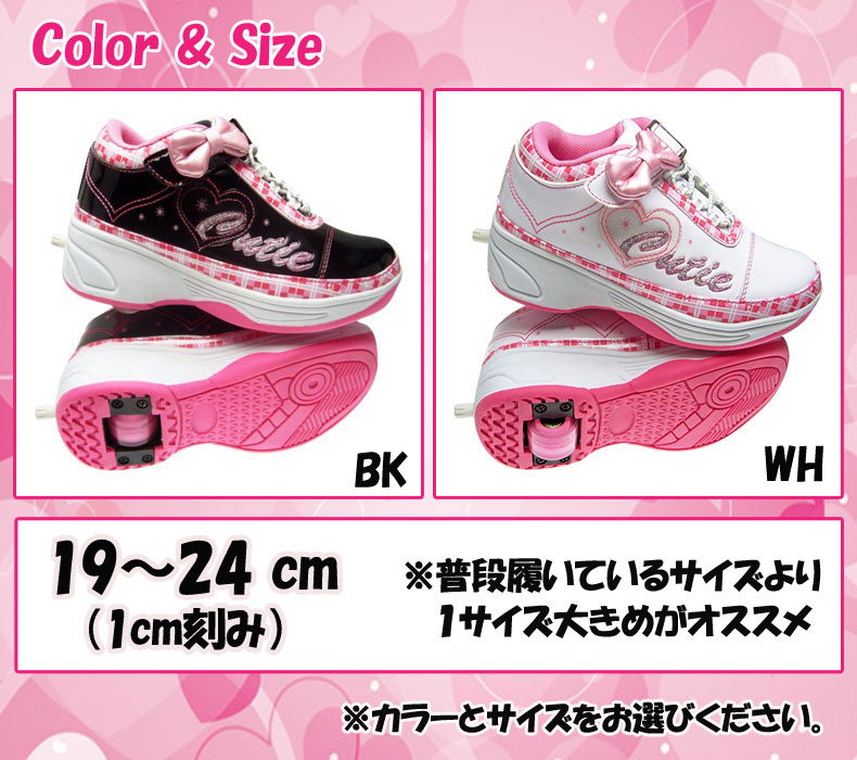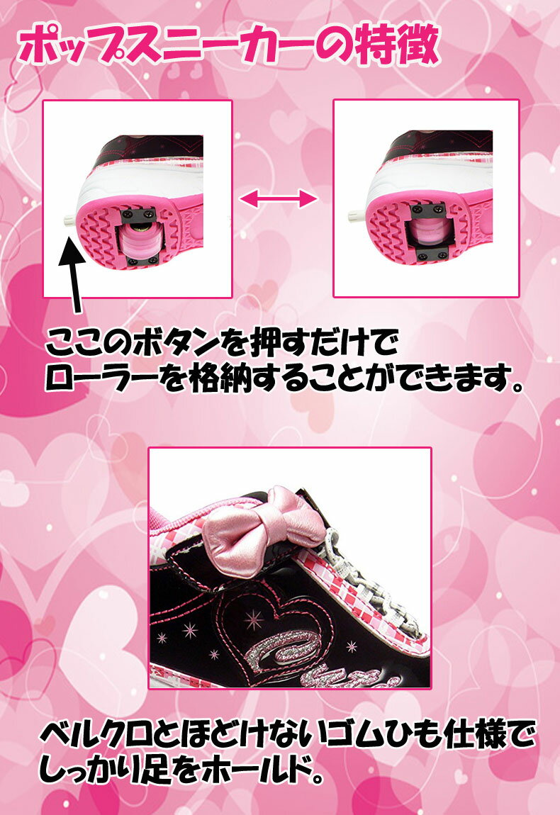 とってもかわいい靴 ポップスニーカー キューティー WH/BK ワンタッチ ウィール収納式 インライン ローラースケート キッズ ジュニア ローラースニーカー ラングスジャパン 送料無料 誕生日 プレゼント クリスマス クリスマスプレゼント