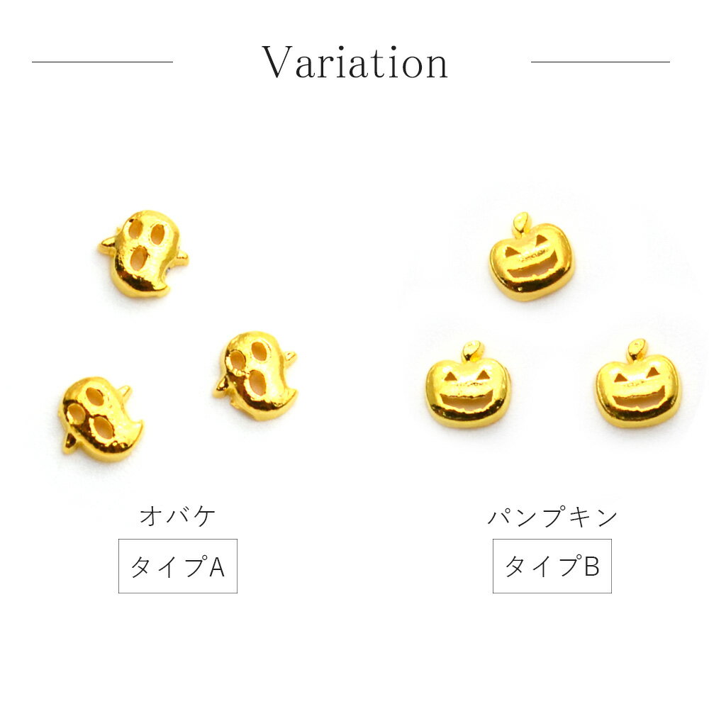 ハロウィンメタルパーツ オバケ パンプキン ゴールド 5個入 Halloween かぼちゃ 幽霊 ネイルパーツ ネイルアート